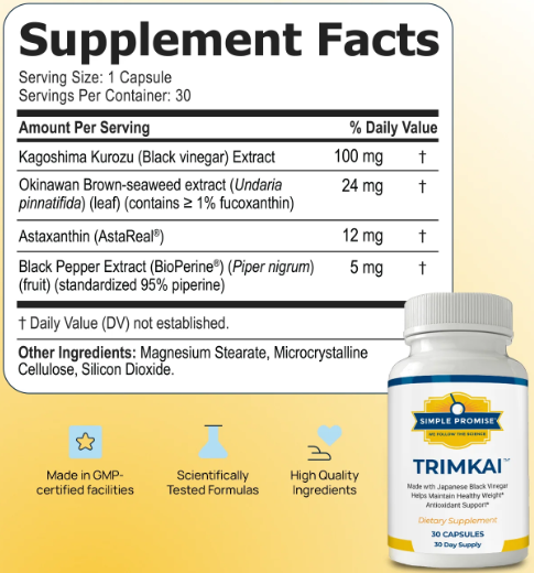 TrimKai Supplement is produced by Simple Promise, a company known for developing health products based on natural formulations. The brand emphasizes quality, safety, and transparency in its manufacturing process.